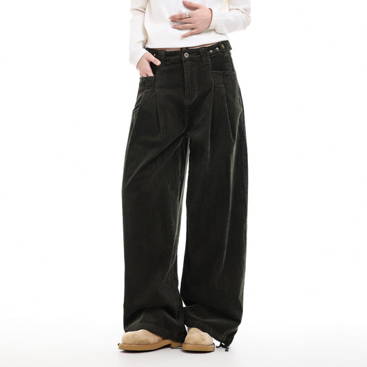 corduroy drawstring wide-leg pants No.347